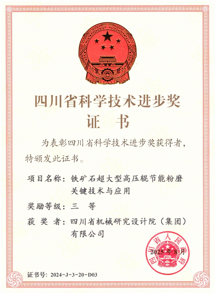近日,2024年度四川省科學技術(shù)獎勵大會在成都舉行,川機集團參與的“電子裝聯(lián)關(guān)鍵精密件數(shù)智化制造技術(shù)及應用”項目和“鐵礦石超大型高壓輥節(jié)能粉磨關(guān)鍵技術(shù)與應用”項...